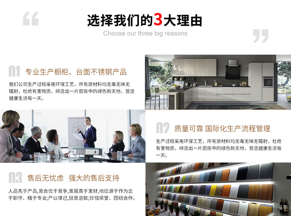 淮安蒂洛奇家居不銹鋼櫥柜廠家專業(yè)生產(chǎn)不銹鋼櫥柜、不銹鋼整體櫥柜、不銹鋼臺面、等產(chǎn)品,蒂洛奇櫥柜堅信以客戶生活為己任,生產(chǎn)過程采用環(huán)保工藝,所有原材料均無毒無味無輻射,杜絕有害物質(zhì),締造出一片廚房中的綠色新天地,營造健康生活每一 天。